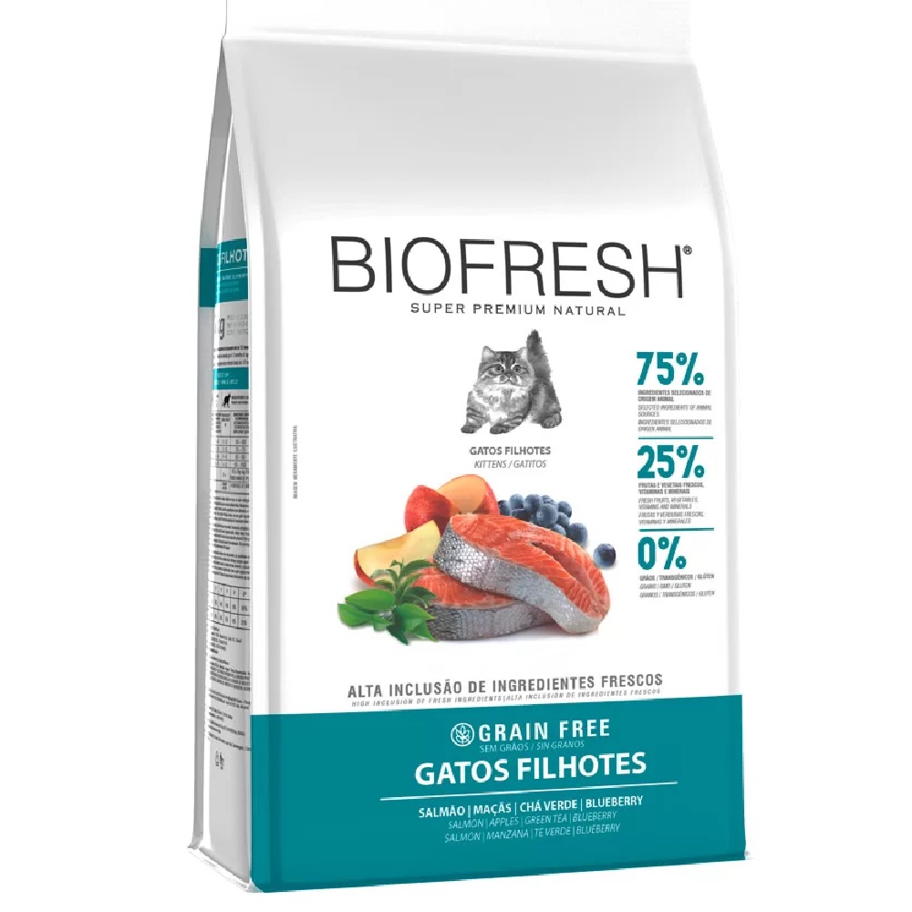 Alimento Biofresh Gato Filhote Sabor Salmão, Maçã, Chá Verde e Blueberry