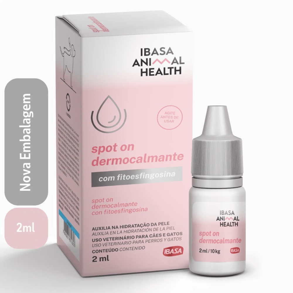 pipeta dermocalmante Ibasa, spot on fitoesfingosina, cuidado pele sensível pet, alívio coceira cães e gatos, hidratação dermatológica pet