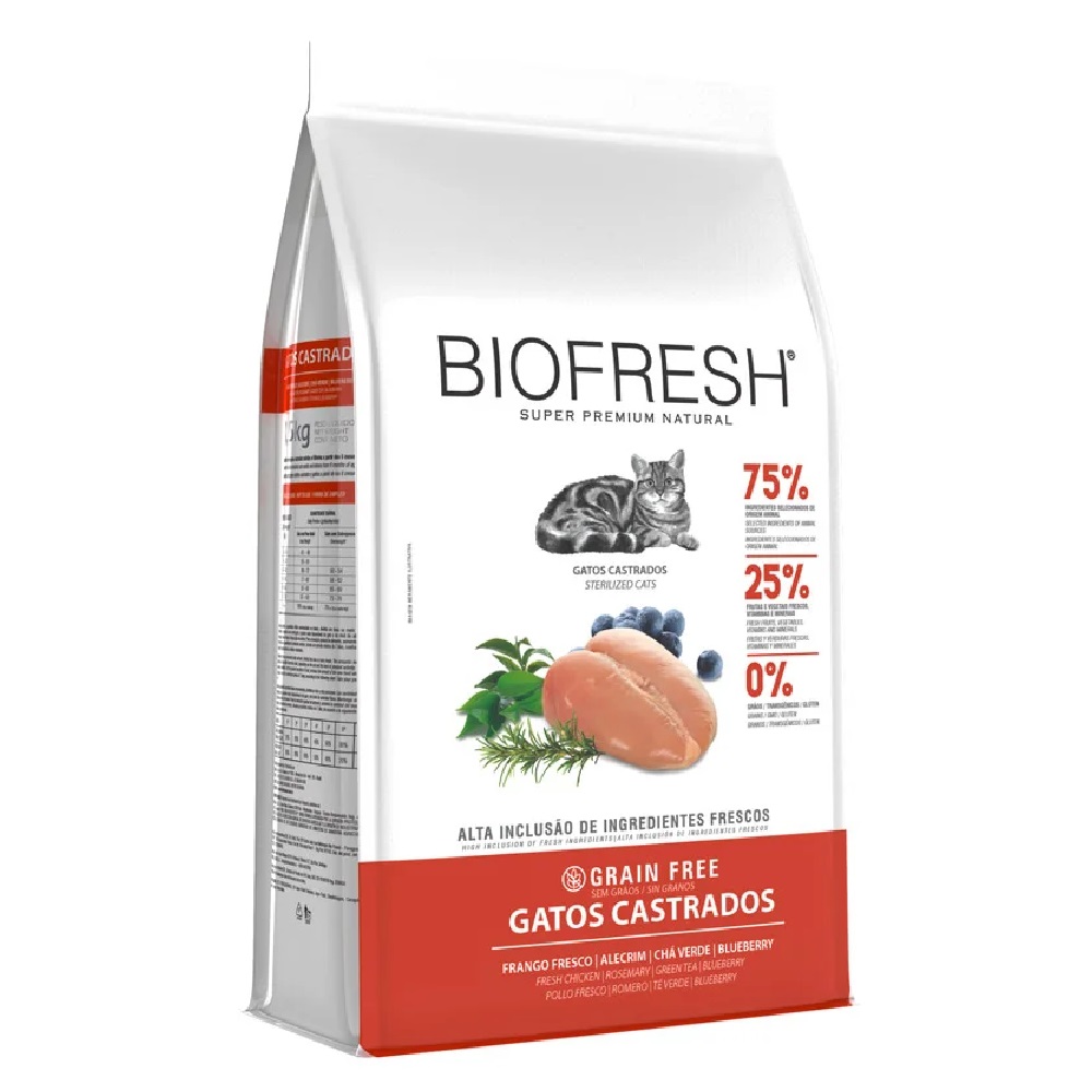 Alimento Biofresh Gato Castrado Sabor Frango, Alecrim, Chá Verde e Blueberry