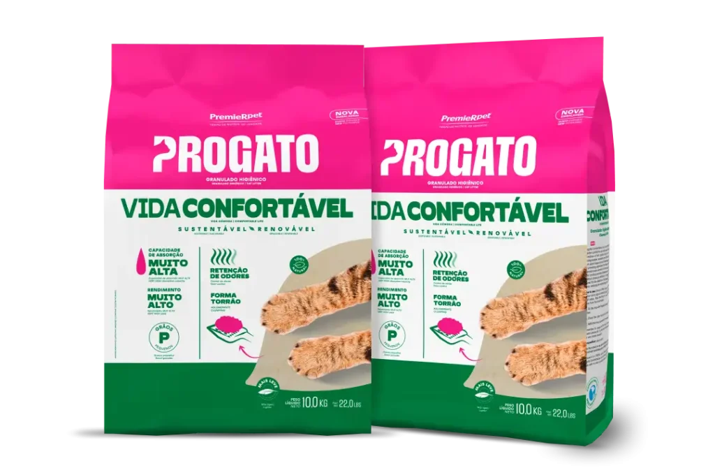 Progato VIDA Confortável é um granulado higiênico biodegradável, renovável, 100% natural à base de fontes vegetais. Desenvolvido a partir de estudos que promovem alternativas que atendam às necessidades de felinos e tutores que desejam um planeta mais sustentável.